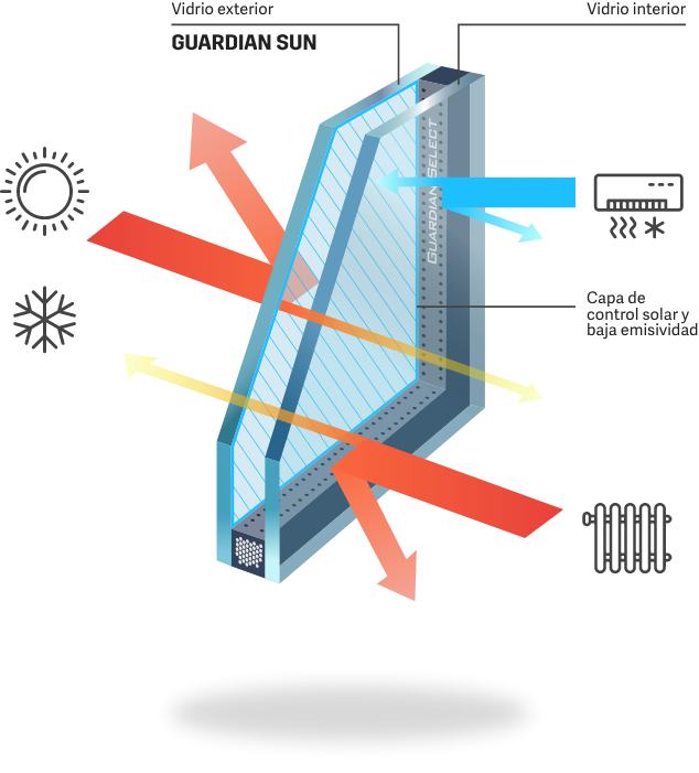 Optimiza la eficiencia energética de tu hogar con los cristales Guardian Sun, que filtran la radiación solar y mantienen la temperatura interior confortable durante todo el año.